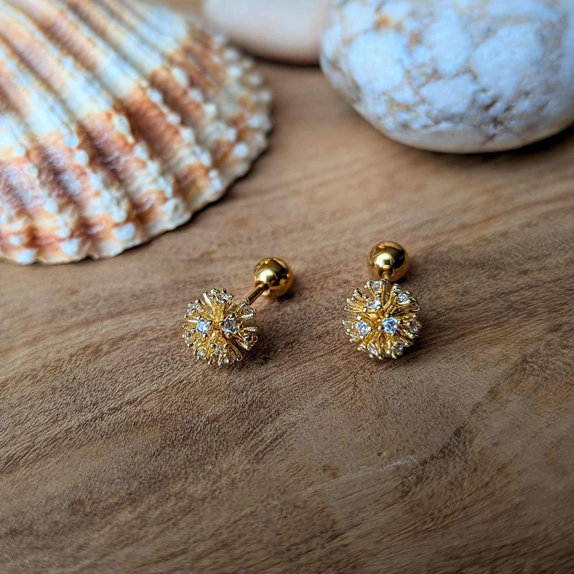 En unik tolkning av den klassiska örhängeskulan, med ett elegant kluster av gnistrande cubic zirconia, inspirerad av en stjärnexplosion, eller kanske maskrosfrön? Perfekt för dig som vill ha något tidlöst med en modern twist.